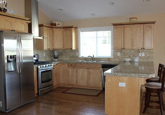 Nice newer neighborhood, this home is better than new. Owners added additional upgrades since purchase including SS gas range, contemporary hood & microwave drawer & heat pump. Hardwood extended throughout living room, guest bath re-tiled, crown & new paint inside. Nice little garden area out back, manageable yard, nice outdoor deck AND patio area. Great Mt. Hood view!