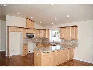 Nice newer neighborhood, this home is better than new. Owners added additional upgrades since purchase including SS gas range, contemporary hood & microwave drawer & heat pump. Hardwood extended throughout living room, guest bath re-tiled, crown & new paint inside. Nice little garden area out back, manageable yard, nice outdoor deck AND patio area. Great Mt. Hood view!