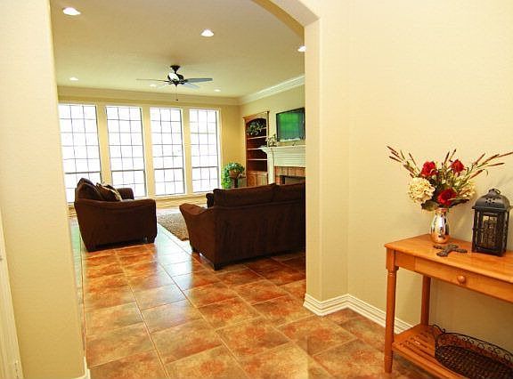 Property is located a block from Palestine with community boat ramp & a park! Custom features are granite counters, tumbled marble backsplash, stainless appliances, instant hot water, & a granite breakfast bar. Additional features are high ceilings with premier crown molding, wide baseboards & designer colors throughout. Open concept living allows 3 rooms to enjoy the fireplace & tall windows with views of the greenbelt behind the home. The master suite bathroom has a walk-in shower with custom tile, a jetted tub & a huge walk-in closet. There's a spacious utility room & a beautifully landscaped yard with a sprinkler system & covered back patio! You can be on the water in a couple of minutes from this location! Exquisite property!