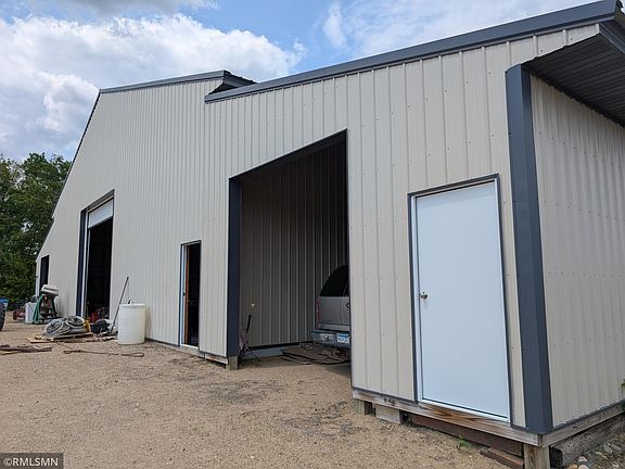 This country property located between Long Prairie and Sauk Centre has a lot to offer to the new owner. The 8.64 Acre parcel has a pond with 2 bedroom, 2 bathroom home and outbuildings tucked back barely noticeable from the road. The home was built in 1999. The main level has a ¾ bathroom, laundry room, large open kitchen with peninsula, gas stove, dishwasher and refrigerator and walk in pantry. Then walk into the beautiful living room done all in knotty pine with vaulted ceiling and a full wall of windows facing East. There is also a wood burning fireplace. Upstairs is a loft style bedroom which overlooks the living room and the scenic view of the land and pond. There is also a full bathroom with jetted tub plus shower and walk in closet. In the basement you walk into the tuck under garage. There is also a bedroom with egress window. Forced air furnace, gas water heater, water softener and pressure tank are in the unfinished portion. There is a drilled well and compliant septic system with drain-field. The property also has spectacular outbuildings. One pole shed built in 1999 is 40x30 with concrete floor and electric. It has a lean-to of 24x9. The other building built in 2006 is 104x60 with a 104x20 lean-to added in 2015 and another 104x20 lean-to added to the other side in 2019. The parcel is bordered by tillable land and wooded land. Auction date is June 27th.