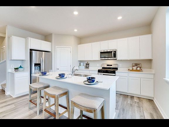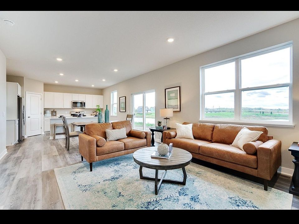 This beautiful home offers an open- concept main level, with flex room and a beautiful kitchen including quartz kitchen counter tops, new kitchen backsplash, stainless appliances and a large island. There is LVP hard surface flooring throughout the main level and an enlarged patio out the back door. The upper level is equally impressive with 4 bedrooms ,2 bathrooms , laundry room( with brand new washer and dryer ) and a large loft. The primary suite has its won private bath and walk-in closet. And the other 2 rooms have walk- in closet too. One room has double door closet. Every room is spacious. Smart home is inclueded! Great lot with a pond view. Fresh new driveway just in also grass and three trees . Fantastic location near the Farmington/ Lakeville border. The community is right next to the Farmington high school and only minutes from shopping, dinning and parks! There are wonderful walking trails along the pounds leading to the neighborhood park and deep up to the High School! The community also has there own park for kids play along the walking trail !