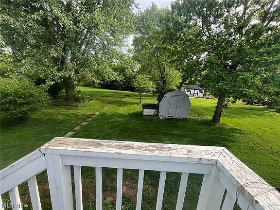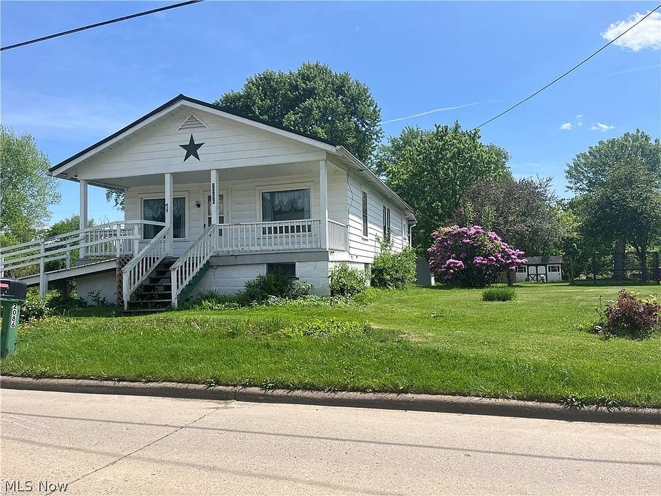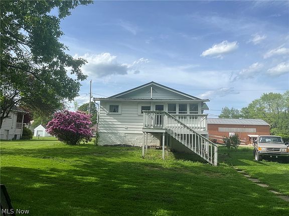 Cute bungalow on edge of town, convenient one floor floor plan w/2 bedrooms, first floor laundry in 2nd bedroom (could easily be moved back downstairs), enclosed sun porch w/wood deck overlooking large backyard, full walkout basement, New metal roof, newer replacement windows, lots of possibilities. Property includes 2 lots totaling 60x120, there is an alley access behind the house. The storage shed stays, taxes reflected are without homestead.