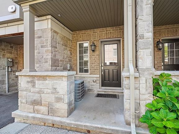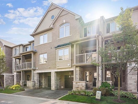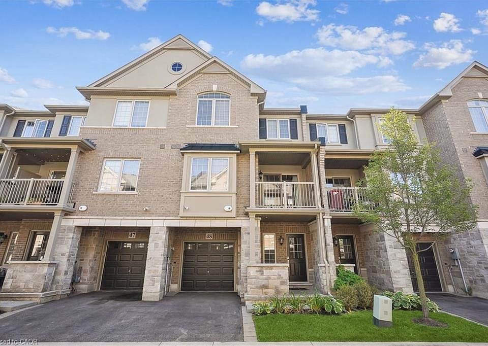 Discover upscale living in a prime Burlington location, just moments from the vibrant downtown core and picturesque waterfront. This exquisite 2-bedroom, 1.5-bathroom townhome offers an unparalleled lifestyle, placing you just a short stroll from the vibrant energy of the downtown core and the serene beauty of the waterfront. Discover a world of top-rated restaurants, boutique shops, and cultural festivities right at your doorstep. Soaring 9-foot ceilings and contemporary pot lighting create a spacious and airy ambiance throughout. Gleaming hardwood floors flow seamlessly through the main living areas, complemented by a striking hardwood staircase that adds a touch of elegance.The heart of the home is the stunning gourmet kitchen. It boasts sleek quartz countertops, including a large breakfast bar perfect for casual dining. Discerning chefs will appreciate the suite of higher-end stainless steel appliances and additional kitchen storage provided by upgraded, modern cabinetry. Step out from the living area onto your private balcony an ideal spot for your morning coffee or evening relaxation, complete with a convenient BBQ gas line. The upper level continues to impress with two spacious bedrooms, including a primary suite featuring a walk-in closet. The thoughtful design includes the convenience of bedroom-level laundry. With effortless access to the GO Station and major highways, your commute is as seamless as your lifestyle. This is more than a home; it's your opportunity to experience the very best of Burlington living. Some photos have been virtually staged.