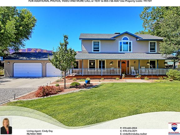 Country feel but city close! You will not believe the views from this large 4-bedroom, 2.75-bathroom two-story home! Enjoy the serenity from your expansive front porch and the Colorado National Monument views from your covered back patio. There are nearly 2.5 acres to roam, and a detached heated and insulated extra garage or workshop with 220-volt electricity for those who like to take on projects in the winter. There is also a separate level gravel area for a hot tub and gazebo. Both the front and back yards are beautifully landscaped and you have irrigation water. The kitchen boasts antiqued cabinets, frosted glass upper cabinets, and stainless steel appliances. And if you love to invite lots of people over for meals, you will enjoy the formal dining room with gorgeous views. The master bedroom ensuite has a separate tub and shower. The gas fireplace in the living room will keep you toasty in the winter months.