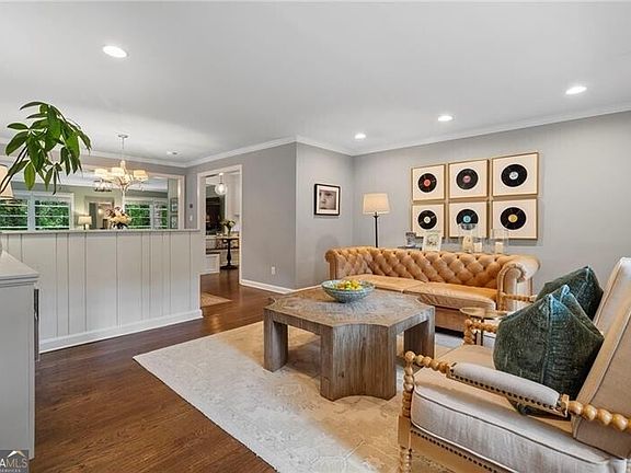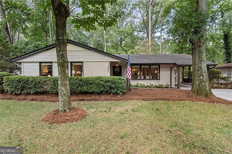 This stunning, fully updated ranch-style home sits on a generous half-acre lot, just minutes from Morningside Nature Preserve, Piedmont Park, Emory University, and Morningside Village! The bright, open floor plan features hardwood floors throughout and a spacious layout with multiple living and dining spaces. The updated kitchen is complete with ceiling-height custom cabinetry and slide-out shelving, granite countertops, premium KitchenAid appliances, apron-front sink, and a built-in corner bench with storage. The recently renovated laundry room adds both style and functionality, offering additional shelving and ample storage as well as a wine and beverage fridge. French doors from the large family room open onto an expansive back deck overlooking a private, tree-lined backyard. Also off the family room, is a convenient powder bathroom. The oversized primary suite with dual custom closets, soaking tub, marble walk-in shower with frameless glass doors, and double vanities with quartz countertops. Two additional spacious bedrooms share a beautifully renovated full bath with tub/shower combination. Additional features include a whole house dehumidifier and air purification system and unfinished basement area with exterior entry from the deck -- perfect for additional storage. This move-in-ready home offers timeless finishes, thoughtful upgrades, and a location that's hard to beat.