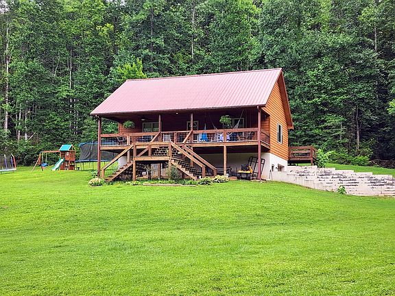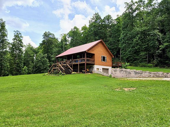 : Come see this gorgeous, cabin style home setting back off the road featuring a large, covered front porch with swings to enjoy the long summer days and lot of room for entertaining friends and family. There is a great spot out front that would be perfect for a pond to make an incredible view and so much space to add a large, detached garage or more homes/rentals to the property. This home features 2 bedrooms, 1 full bath upstairs and a bonus room that would be perfect for a home gym, extra bedroom or rec room and a full bath downstairs. This home has so much potential for small families or even as a rental. The open living space between the kitchen and living room gives this home a warm, inviting feeling and allows you to watch the kids or enjoy your company while cooking dinner.