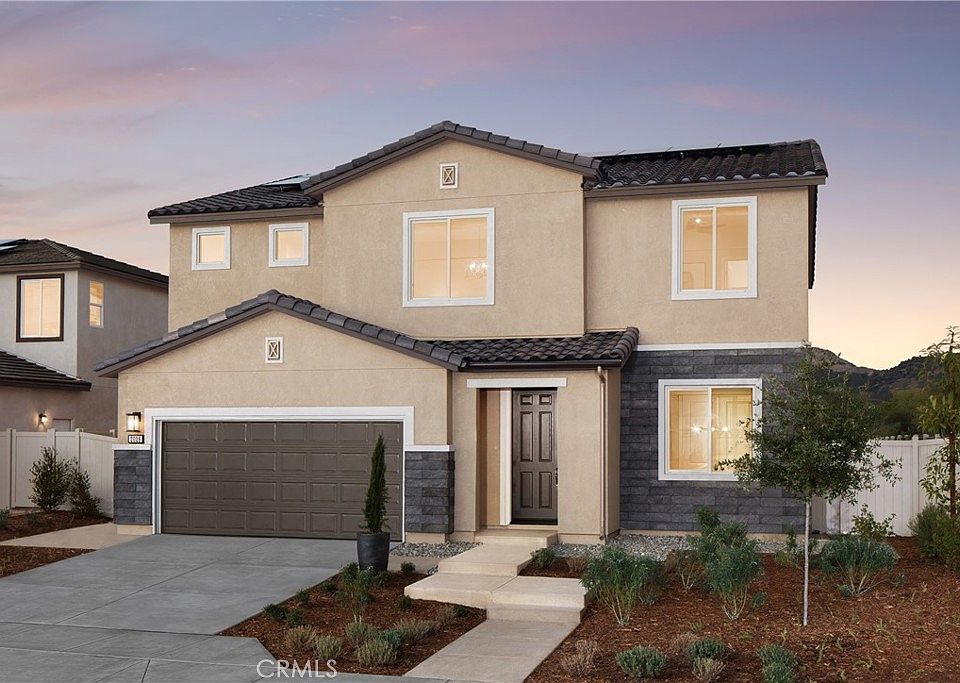 Discover a newly built two-story home where thoughtful design meets casual sophistication. Located in the scenic hills of North County San Diego, this home offers an ideal blend of comfort, flexibility, and everyday elegance — perfect for families or anyone seeking more space and style. Ask about limited-time incentives and financing options that may help reduce your monthly payment or closing costs. Step through the charming covered porch and into a spacious foyer with upgraded flooring and designer-curated finishes throughout. Just off the entry is a private Study, perfect for remote work or quiet focus. The main living area opens up into a bright, airy Great Room anchored by a stylish Kitchen with walk-in pantry, expansive island, and sleek cabinetry that blends functionality with flair. A spacious Dining Area offers seamless flow for entertaining and daily meals. A first-floor bedroom and full bathroom are tucked away for guests, multi-generational living, or extended stays — while a built-in Stop & Drop zone helps keep backpacks, mail, and routines organized. Upstairs, the generous Primary Suite features a spa-inspired bathroom with soaking tub, glass-enclosed shower, dual vanities, and a large walk-in closet. The secondary bedrooms are thoughtfully spaced, each with their own walk-in closet, and centered around a Loft that can serve as a second living room, play area, or media zone. Upstairs laundry and extra storage make everyday living even easier. Crafted by Beazer Homes, the nation's leader in Zero Energy Ready construction, this home is designed to deliver lower utility bills, healthier indoor air, and a more sustainable lifestyle — complete with ENERGY STAR® and Indoor Air Plus certifications. Please note: Photos shown are of the model home.