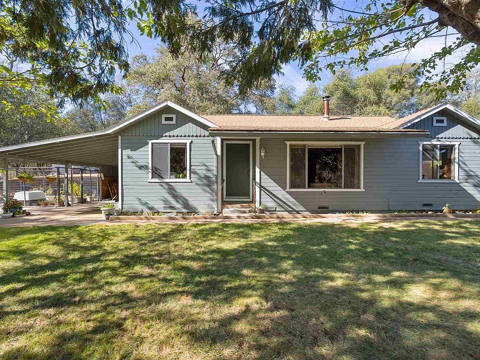 Take a look at this beautifully maintained 1 level home! Great location with easy access to HWY 108, shopping, and local entertainment. Sitting on a 1.67 acre lot and with 1200 sq. ft. this home has so much to offer! Easily entertain on the spacious concrete patio perfect for parties and events! Inside you'll find 3 carpeted bedrooms and 1 bath with a single vanity, shower and tub, and storage! The large window in the living room allows for plenty of natural light showcasing the free-standing fireplace and the open-concept room. The kitchen features plenty of storage and space to gather and cook with loved ones. This home is one level. Outside you'll find plenty of parking for guests or RVs with a large carport in the driveway. There are 2 large storage buildings on the property. Enjoy the serenity of living in the mountains out on your back patio! Pick up where the landscaper left off and create your dream yard! Don't delay, call today for a private showing!