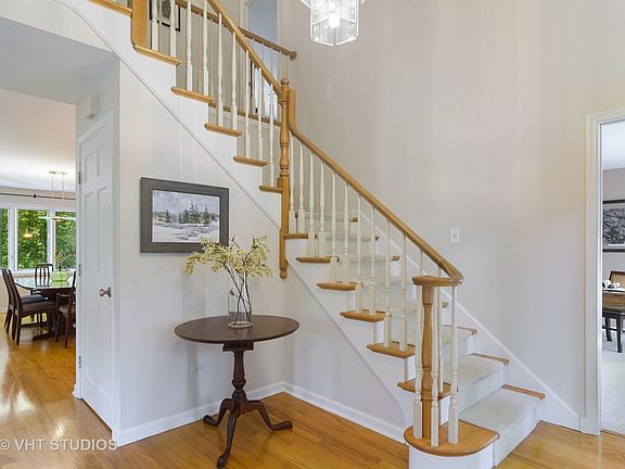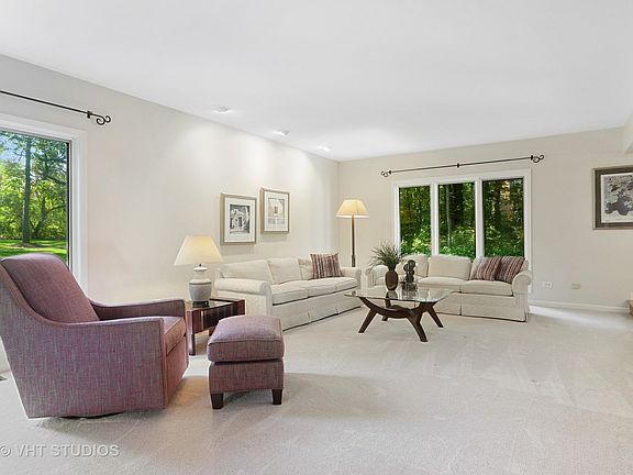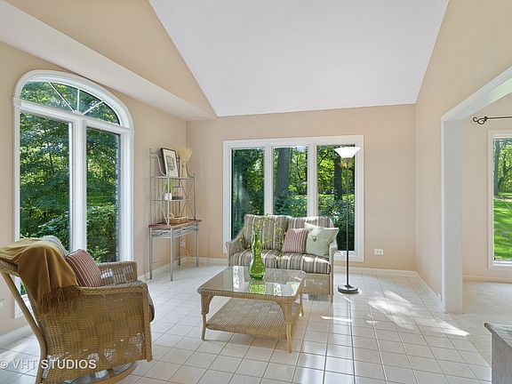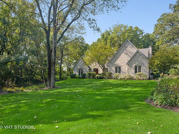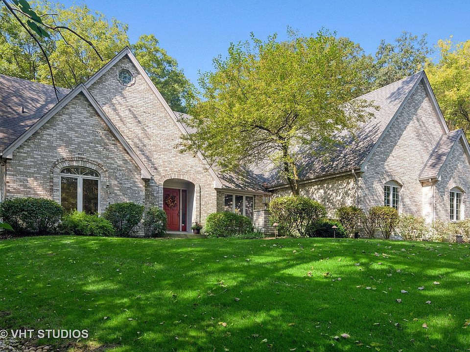 This custom-built 4 bedroom, 3.1 bathroom home with an enchanting stone front boasts amazing curb appeal and a desirable floor plan made for entertaining and every day family living. Nestled on a lush 1.4 acre wooded lot in the desirable Farmington of Kildeer neighborhood. Impeccably maintained throughout the years with a freshly painted first floor, updated bathrooms, professionally refinished garage floor, newer roof, appliances and mechanicals. Step into a welcoming foyer that opens into the living room, dining room and sun room. Expansive picture windows throughout the first floor allow natural light to fill the home. The spacious eat-in kitchen, featuring refinished cabinets, granite countertops, a breakfast bar, a large kitchen island, stainless steel appliances and a breakfast room with vaulted ceilings, adapts to any occasion - from simple weeknight dinners to larger gatherings. The stunning family room features a vaulted ceiling, built-in shelving and a marble gas fireplace. Sliding doors from the family room lead out to the deck - the perfect spot to grill, dine al fresco and enjoy the tranquility of nature. Elevate the work-from-home experience with a private home office overlooking a pristine yard. Rest and relax in a spacious master suite with an ensuite bathroom featuring a refinished double vanity, glass-enclosed shower area and soaking tub. Two additional bedrooms that share a full bathroom complete the upper level of the home. The finished basement provides additional space for a recreation room, game room, wet bar, fourth bedroom and full bathroom. Across the road from Farmington Bath and Tennis Club - a beautiful outdoor recreation facility that all ages will enjoy in the summer. A short drive to Deer Park Town Center, restaurants and retail; with convenient access to Route 53. Served by top-rated District 95 schools and Lake Zurich High School.