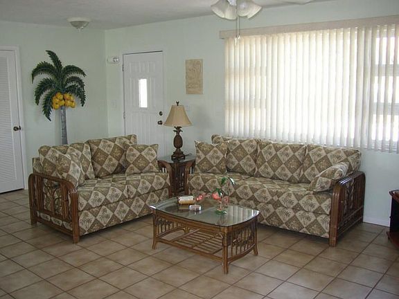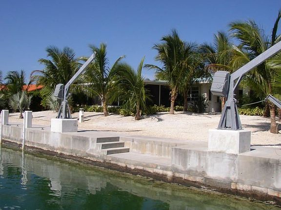 Deep water access, no bridges, 120 ft. seawall perfect for multiple boat owners, dock is equiped with boat lift + davits, shorepower. This home has two bedrooms and two baths. Master suite has private patio. There is also a screened porch with a hot tub. There is a one car garage. The yard has pea rock and lush landscaping. Great Turn Key Vacation Rental