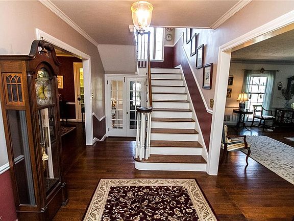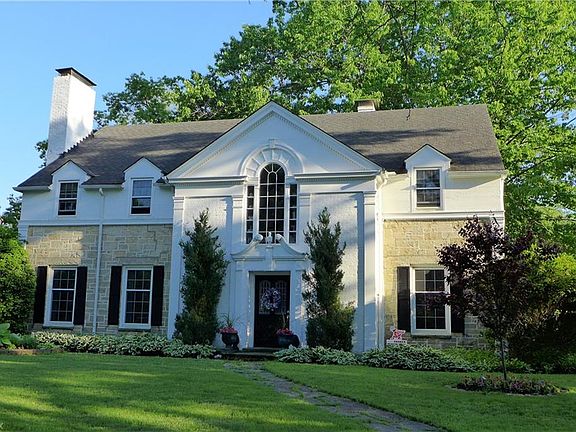 Classically "Shaker", this Stone and Wood Western Reserve Colonial offers a refined stately elegance while providing all the comforts of home! With 6 Bedrooms, 3 Full Baths and 2 Half Baths, 4 Fireplaces and multiple living spaces and three levels, your family can enjoy time together...or have their own space. Inside, enjoy original Hardwood Flooring on all three levels, newly updated kitchen with gleaming Black Granite Counters and Stainless Appliances, Formal Dining Area with original crystal chandelier and Large Lighted China Closet, Large 23' x 17' Living Room (Built-ins, Chair Rail, Crown and Picture Molding), Paneled Den with Built-in Library Shelves, Wood Burning Fireplace which opens to a 4 Season Sun Room with Skylights so you can bring the outdoors in...even in the coldest winter months! Outside, a stately Palladium window highlights the Stone and Wood Exterior surrounded by landscaped beds and flowering trees with a stone patio in the backyard and barbecue area with lighted pergola. Large Bedroom sizes throughout, many with their own bath and massive amounts of storage including two cedar closets.. Newest Bath surrounded by Marble Subway tile and flooring. Property surrounded front and back with Invisible Fencing. Shown by Appointment, call today!
