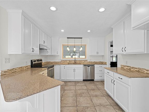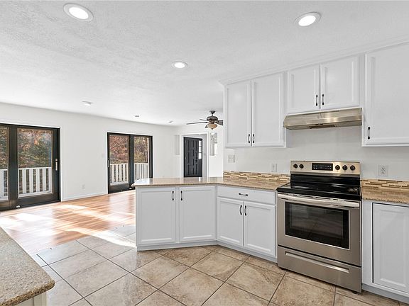 Beautifully updated ranch style home on 2.88 fenced and usable acres just outside city limits. Home offers fresh interior and exterior paint and has been recently remodeled. Features include a large formal living room plus a second living area/family room off the kitchen with a wood-burning fireplace. Kitchen includes custom maple cabinets with soft close doors, quartz countertops, and ample storage. Flooring consists of LVP in living areas and bedrooms and ceramic tile in the kitchen and bathrooms. Crawl space is fully encapsulated. Property includes a basement that serves as an ideal storm shelter. Heated and cooled sunroom overlooks the acreage. Total electric home. Located in a private, country like setting with wooded views and room for animals, gardening, or outdoor use.