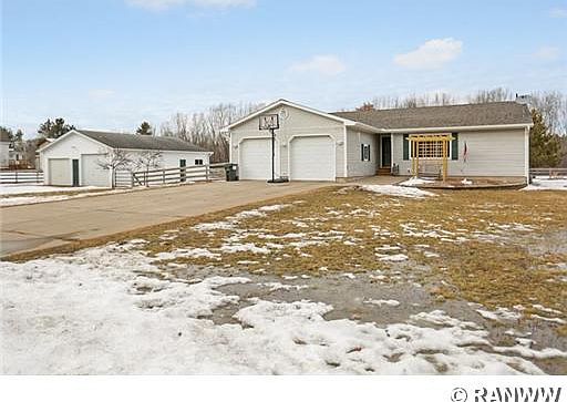 24X24 ATTACHED AND INSULATED GARAGE, 28X36 DETACHED GARAGE WITH OVERSIZED DOORS W ADDT 8'DOOR IN BACK, 16X20 COVERED PORCH OVERLOOKING FENCED IN BACKYARD,LOW E TEMPERED GLASS WINDOWS,PERGO TYPE LAMINATE FLOORING, BEAUTIFUL OPEN FLOOR PLAN.KITCHEN COUNTER SPACE THAT WILL WOW YOU,MAIN FLOOR LAUNDRY LL FAMILY ROOM W FIREPLACE WITH 2 ADDT BEDROOMS, BATH, OFFICE AREA, STORAGE. THIS HOME HAS IT ALL PLUS ON OVER 2 ACRES OF LAND. CLOSE TO GROCERY STORE,LAKE WISSOTA. COUNTRY FEEL WITH COVENIENCE.