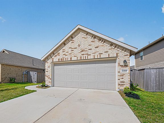 Welcome to 20869 Cropani Shadow Dr! A practically new (2023) single-story home in the Tavola master-planned community, offering about 1,220 sq ft and 2 baths with central cooling, brick exterior, slab foundation and an attached garage a perfect low-maintenance footprint for first-time buyers or investors. The open living spaces are bright and efficient, bedrooms are well-proportioned, and the home sits in a vibrant neighborhood with trails, a community pool and playgrounds nearby (Tavola). Located in the New Caney area and supported by local community amenities and convenient access to Highway 59, this property blends modern new-build comfort with everyday convenience.