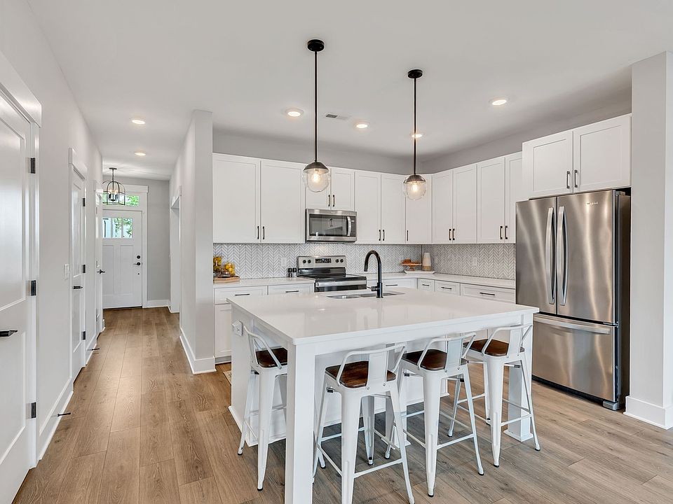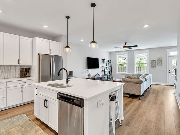Get ready to fall in love with this stylish, move-in-ready home that checks all the boxes. From the open floor plan and chic finishes to the fabulous natural light, incredible storage and thoughtful design, this one is made for real life and good times. The kitchen is a total showstopper - bright white cabinetry, tons of quartz countertops, and a chevron marble backsplash that adds just the right touch of wow. The oversized island is perfect for gathering with friends, accented with sleek pendant lighting. Plus, the walk-in pantry is ready to handle Costco runs with ease. The living room? HUGE. Think game days, movie nights, and space to relax. Work from home? You’ll love the dedicated office (or use it as a 3rd bedroom if you need flexibility). The foyer niche keeps backpacks, keys and daily stuff in check. Durable, neutral LVP flooring runs throughout the main level—aka style without the stress. Upstairs, both bedrooms have en-suites and fabulous closets. The primary suite spoils you with TWO well-designed closets, a spa-like bath with a large tiled shower, dual sinks, and a linen closet. The secondary suite has its own marble-accented bath with tub/shower combo. The laundry room is conveniently located upstairs too. Storage lovers - don’t miss the floored attic space. And yes, the whole house just got a fresh coat of paint, so it feels new! Outside, enjoy a covered front porch and a fenced-in backyard (HOA maintains the front and rear lawns for you). Parking? No problem - your private driveway fits two cars plus guest spots in front and back. The location seals the deal: minutes to Germantown fun, East Nashville restaurants and nightlife, Nissan Stadium, Bridgestone, Broadway, and the future Oracle campus. This 2021 build gives you a true lock-and-leave lifestyle with all the trendy hot spots just minutes away. Stylish, smart, and seriously move-in ready—don’t miss it!