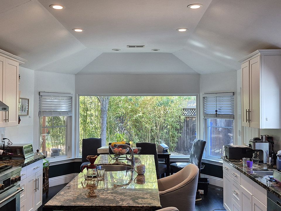 Large kitchen with new high-end gas range and convection oven, 2 large sinks with heavy duty garbage disposals, dishwasher, rice cooker, commercial coffee grinder, drip coffee and espresso machine, tableware, cookware, spices, everything that you could want for a great cooking and dining experience.