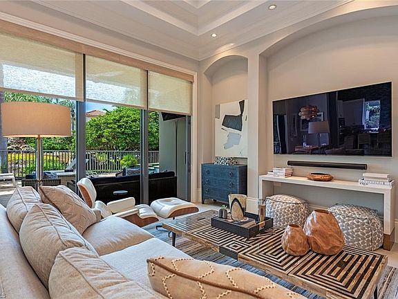 Welcome to Resort Style Living, Welcome to Grey Oaks! Beautifully furnished, this luxury home offers an ideal retreat in a peaceful setting. Designed with timeless finishes and practical elegance, this home features three spacious bedrooms and three-and-a-half baths, a large den and office. All are highlighted by high ceilings, detailed moldings, and premium flooring and all allow an abundance of natural light. The gourmet kitchen is equipped with Viking appliances and custom Heartland cabinetry, opening seamlessly to the large great room and an outdoor lanai. Perfect for entertaining, the outdoor living area includes a seating area with outdoor TV, a heated pool, spa, and summer kitchen, all overlooking a tranquil tropical waterfall feature. Andersen impact-resistant windows and doors provide security and peace of mind, while the attached two-car garage and separate golf cart garage add convenience. This Gulfshore-built residence delivers the perfect combination of style, comfort, and easy living—an excellent choice for buyers seeking a refined lifestyle. Minutes from downtown, and the beach this home is not to be missed. Grey Oaks Country Club is Naples' one and only private club with 54 holes of championship golf. In addition, the club offers an unparalleled array of exclusive amenities, including a newly renovated wellness center, a lagoon-style pool, tennis, pickleball, bocce, multiple dining venues, and a luxurious spa. The amenities are truly endless.