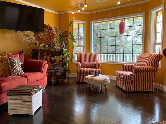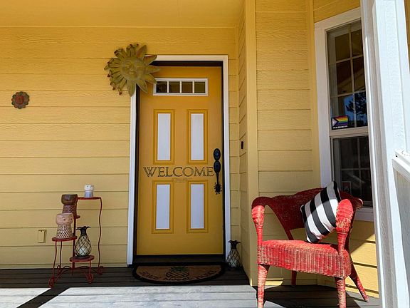 Welcome home to Starwood. Enjoy glorious sunrises from your wrap-around covered porch and starry nights from your private hot tub deck. This 3 bed, 2.5 bath, 2 level farmhouse style home is situated at the end of the road, connected to wild common area on two sides. Beautiful natural rock outcropping creates a unique outdoor entertaining space including multi-level decks, a tiki bar, hot tub, playhouse, fire pit and water feature. PeekaBoo view of Mt Bachelor and Mt Washington from upper deck and secondary bedroom, A bright and happy interior color scheme is whimsical with a touch of elegance throughout. All bedrooms are on upper level. Large 2 car garage with workbench and extra fridge. Oversized storage room behind garage. Wheelchair ramp added for access to rear deck. Heat pump with central A/C and a pellet stove for extra cozy heat. Low maintenance xeriscape landscape with in-ground sprinklers. HOA offers RV/boat storage, common areas, walking trails, dog park and playground.
