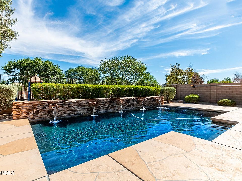 Sparkling poolUpdated kitchenOpen floor planLush landscaped yardBuilt-in grillPrivate backyard retreatRelaxing hot tub