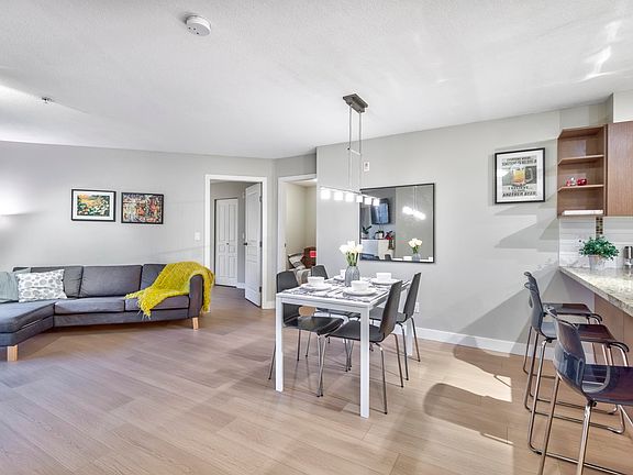 Check out this spacious, owner-occupied 2 bedroom + den (or Jr 3-bedroom) built by Ledingham McAllister. This sun-drenched, south-facing home overlooks the serene courtyard, offering peace & privacy.The massive primary bdrm truly fits a Cali King bed & your house-sized furniture, complemented by a large walk-in closet and a four-piece ensuite. Updates include new laminate flooring throughout & a brand-new washer/dryer for a turnkey experience. Conveniently located & just a short stroll from the vibrant shops & eateries of Amazing Brentwood & Solo District. This is one of the only communities in the Lower Mainland w/ unbeatable access to both the Skytrain & Hwy 1. Amenities include a beautiful open courtyard, bike storage, & ample visitors parking. OPEN HOUSE Sat Dec 13, 2-4pm.