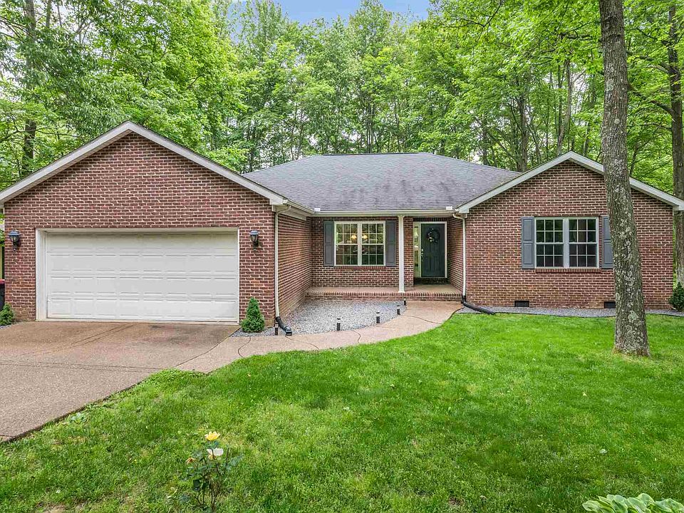 Brick Ranch with finished walk-out basement! Part of Rolling Hills Manor, this beautiful home sits on a half acre with almost 3,000sqft, 4 Bedrooms, 3 full baths, eat-in kitchen, living room with fireplace and cathedral ceiling, formal dining room, family room, den/office, laundry room. Kitchen includes appliances, pantry, breakfast bar, dining area with access door to back deck. Open main level is split bedroom design. Main floor has 1924sqft and finished basement totals 1045sqft with 4th bedroom, family room, den/office, full bathroom, and access to back patio. Owner's Suite includes a full bath with double sink vanity, standup shower, and jetted whirlpool tub. Laundry is located on main floor off of kitchen. Exterior features include: mature trees on back of property, covered front porch, driveway is extra wide for parking, roof is 9 years old. There is no HOA fee.