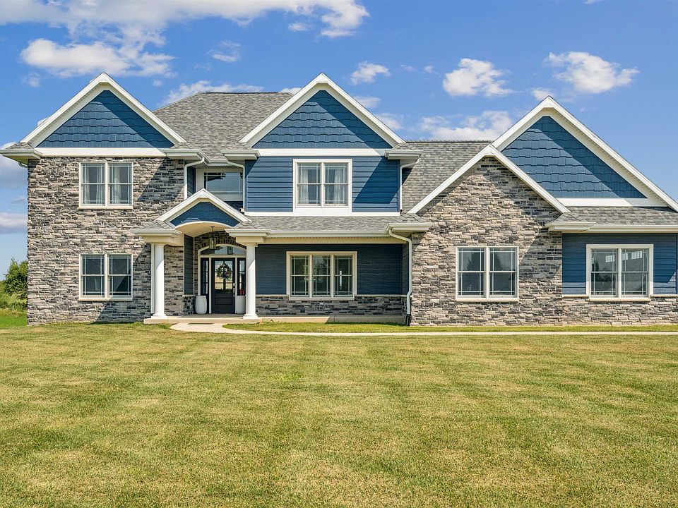 Spacious and luxurious are the perfect words to describe this breathtaking two-story home built in 2019, boasting over 5,000 square feet of meticulously finished living space on a generous 1.2-acre lot. The property offers four bedrooms, three full bathrooms, plus a powder room, alongside a fully finished basement that offers direct access to a beautiful, level backyard. It's equipped with a three car garage at the main level and an additional three car capped garage with a single stall door at the lower level, offering a perfect setup for a workshop, home fitness center, or storage for recreational vehicles. The heart of the home on the main floor features an open plan kitchen and living space filled with natural light and capturing picturesque views. The kitchen is a chef's dream, with dual ovens, a gas cooktop, and a spacious island that caters to all your culinary and entertaining needs, complemented by a cozy breakfast/coffee nook and a hidden walk-in pantry. Upstairs, you'll discover three generously sized bedrooms, including a magnificent owner's suite that offers stunning views and ample room to relax and rejuvenate. The lower level offers an inviting entertainment space with direct access to the outdoors, creating a smooth flow for both indoor and outdoor gatherings. This space consists of a custom bar/kitchenette, spacious family room, fourth bedroom, fifth non-conforming bedroom, and convenient access to the three-car capped garage for additional storage. Don’t miss the chance to call this exceptional home your own, contact your agent today for a private tour. *This home is conveniently located across the street from Sundown Mountain Ski Resort, is a few short minutes from Meadows Golf Course, is serviced by city of Asbury utilities and is located within Dubuque Community School District. Matterport Virtual Tour Can be viewed at: https://my.matterport.com/show/?m=JC1ZQG6JGbp