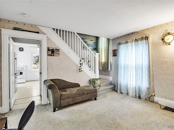 No rear neighbors and lovely woods. Amish shed with electricity in back yard. Close to Newfane schools and a 2 minute walk to Burt Dam and Fisherman’s Park with fishing and hiking trails, beautiful scenery! Just down the street from the Van Horn mansion , short ride to Lake Ontario beaches, Olcott , wine trails and restaurants. Roof is only 12 years old, new front porch 5 years. Electrical panel has been updated. Other updates include: New vinyl plank flooring and paint upstairs Updated electrical wiring, switches, and outlets throughout the house New toilet, light fixture, paint, and vinyl plank flooring in bathroom