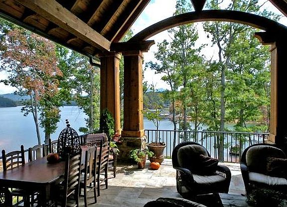 Exquisite Craftsman-style home on Lake Chatuge! Prestigious address in most-sought after location on the lake. Private, yet only minutes to town. Most home furnishings and decor are included in sale. Meticulously maintained. Elevator, newer roof, new whole-house generator, surge protection, HVAC humidification and filtration, water purification and softening systems, camera security system, home theater, library, and billiards room. Main Level and Lower Level kitchens have Wolf, Subzero and Asko appliances. Outdoor fireplace to enjoy chilly evenings by the lake. Very gentle slope to water. Deep-water, double-slip covered dock with electric & water, 2 lifts and kayak ports.