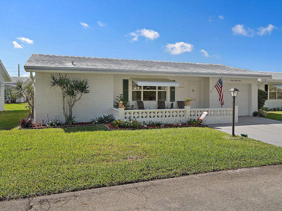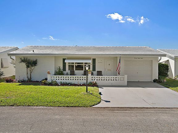 Tastefully updated throughout and ready for move in. Air Conditioning installed in 2016. Impact Resistant Windows throughout and Garage Door. Kitchen is complete with Stainless Steel Kenmore Elite Fridge, Range with turbo boil, Microwave and Kenmore Dishwasher, Mint Green Corian Kitchen Counter tops and tons of cabinet space including lazy susans, bread bin and pull out storage. Both Bathrooms fully updated. Right across the street from Club House 3, which features a pool, sauna, shuffleboard, outdoor grills, Wood work shop, Billiard Room and Banquet hall and room. Back patio was turned into the family room making this one of the largest models in this 55+ community.
