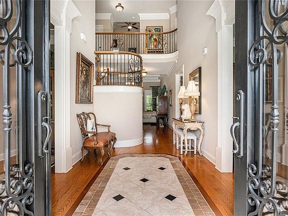 Written words are inadequate to describe this magnificent property in the beautifully maintained, gated Stonewater Creek Community in Hoschton, GA. You see and feel the TLC in the Owner's commitment to the maintenance of both interior and exterior. The curb appeal highlights the beautifully landscaped front yard and continues around to the backyard where relaxation, conversation or just soaking in the beauty of nature abounds in the multiple seating areas. As you step through the entrance, the magnificent, two-story foyer greets you with the specially designed stone floor insert, surrounded by the well-maintained genuine hardwood floors that are found throughout the main level. A large formal dining room and living room/library, flank each side of the foyer. While enjoying this impressive entrance foyer in front of you will be the wide staircase to the second level, a glimpse of the walkway and spacious upstairs bonus room; great for media, crafts, office and more. A convenient half-bath is adjacent to the bonus room. Continuing on the main floor is the large, but warm, family room with one of the four (4)fireplaces in this home. Enjoy the openness as you continue through the family room to access the expansive gourmet kitchen, breakfast room and inviting sitting room with another fireplace. Included is a convenient walk-in pantry, stainless steel appliances, including TWO full-size ovens, microwave, gas cooktop with specially designed vent hood; undercounter separate ice maker and center island that accommodates six stools comfortably. Natural light showers this entire area of the home, showcasing the custom designed Palladian windows, controlled by the Plantation shutters and recently installed thermal pane windows throughout the home. As you enter the spacious family room, prepare to be amazed as you gaze upward to see the beautiful coffered, tray ceiling A guest suite, including a secluded bedroom and full bath round out the main level. The convenient half-bath/Powder Room is adjacent to the family room. The expansive composite deck with grill is conveniently accessed from the kitchen/breakfast room area. Enjoy spectacular views of the landscaped backyard, with multiple seating areas and plantings that demonstrate the Owner’s passion for gardening. Do not miss the convenient, side-entry, three-car garage and storage with easy entry into the kitchen area on this main level. Upstairs will amaze you with a phenomenal Owner's Suite that includes a coffered, tray ceiling, sitting area with fireplace, elegant bath with double vanity, spa tub, walk-in shower, and separate water closet. The massive walk-in closet with built-in cabinetry provides plenty of space for sitting and dressing. Additionally, on this upstairs level, three spacious bedrooms with two full baths and one-half bath are provided. In the center of this upstairs retreat is the spacious unique bonus/multi-purpose room providing comfort and versatility. The large laundry room, with built-in cabinetry and sink, is located on this level providing convenience to all 4 upstairs bedrooms. The fully finished Terrace Level includes a built-in bar and associated cabinetry with display/showcases. A large versatile game/media area is complete with special lighting (for the billiard table). A breakfast area looks over the patio, with multiple brick columns supporting the main level deck while providing magnificent views of the landscaped backyard (welcome to tranquility). This incredibly open space includes another family room with fireplace. A sliding barndoor provides privacy for the additional spacious bedroom suite that includes a full bath with tub/shower combination. This property is a must see for those seriously looking for luxury living with extraordinary, detailed features and located in a quiet, gated, well-maintained community. 2-10 HOME WARRANTY Provided by Seller.