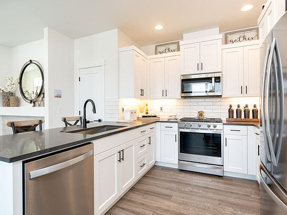 **$15,000 incentive towards closing costs and/or buy down when buyer uses our preferred lender, Hixon Mortgage.**The new 1450 sq ft. Parkside floor plan on Lot 63 is complete and move-in ready! It comes with quartz counters, patio, wood composition flooring, tankless water heater, air conditioning, fencing, HOA maintained front yard, tile backsplash in the kitchen and bathrooms, and gas fireplace. Conveniently located in southeast Bend, Oregon, Easton offers residents an abundance of community amenities. The master-planned community is an intentional blend of everything you need to thrive: residences, retail, swimming pools, green spaces, and more. Photos of a like model and floor plans and finishes may vary.