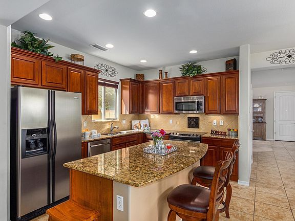 Small town charm in Verrado! This gorgeous 3 bedroom/2.5 bath plus loft home is nestled in the tree lined streets of the Heritage District. The open kitchen to family room is perfect for entertaining. The kitchen includes granite counters, beautiful cabinetry, stainless steel appliances and a large island. Enjoy meals in the eat-in-kitchen, island seating or separate dining room. The living room, family room and loft areas make this home spacious. Relax in your backyard oasis under the covered patio, splash in the private pool with waterfall or sit by the firepit on chilly desert nights. The owned solar will save you $ on your utility bills. The Verrado lifestyle includes two community pools, a fitness center, shopping and dining on Main Street, community activities, 21 miles of