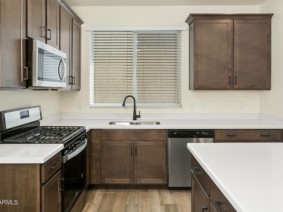 A newer home, without the wait! Built in 2020, this home has been lightly lived in and is essentially brand new. The beautiful kitchen features 42'' shaker cabinets, quartz counters, stainless steel appliances, and wood look plank tile in all the right places. Plenty of room to spread out - 3 bedrooms plus a loft and 2.5 baths. Generous primary suite with a large walk-in closet, en-suite with double sinks and a spacious master shower. Home is perfectly situated in the Verrado community to enjoy the amazing parks, resort style community pool, splash pad, and fitness center. With Starwood's outdoor mall in development and Costco nearly complete, this is the perfect time to buy in Verrado!