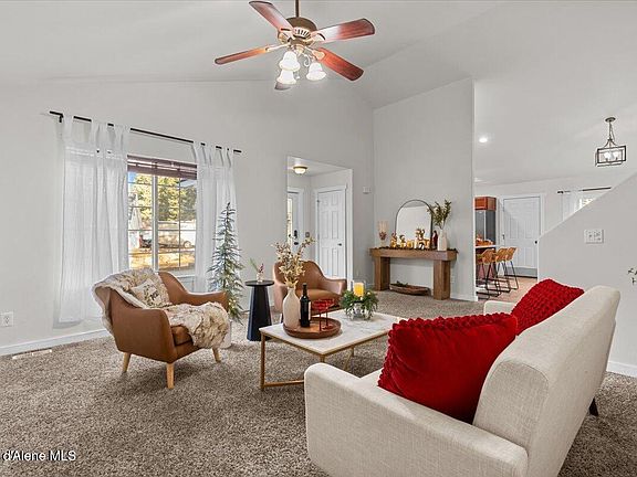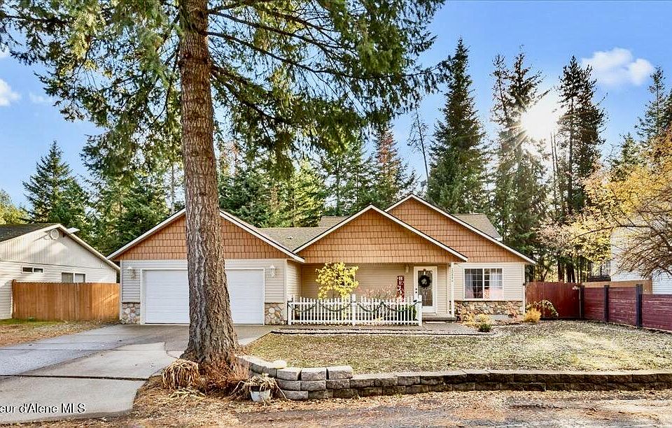 Tucked in the mountains of Rathdrum, where North Idaho charm meets everyday comfort. This 4-bed, 2-bath gem sits minutes from Twin Lakes and offers nearly 2,000 sq ft of thoughtfully updated living space. Step inside to vaulted ceilings, warm wood tones, and a kitchen that truly shines with granite counters and stainless appliances. The primary suite features unique rustic charm with a copper sink, wood accents and a sliding barn door. Downstairs, a spacious bonus room is perfect for movie nights or guests, with plumbing ready for a third bath. Outside, unwind around the firepit and soak in quiet evenings under the pines. Nestled in a friendly neighborhood with easy access to trails, lakes, and schools—this home captures the heart of what it means to live beautifully in North Idaho.