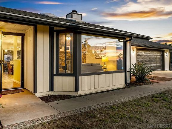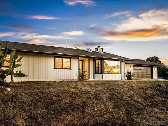 Welcome to your dream retreat in Ramona’s desirable West End! This updated single-story ranch sits on 2.35 acres of flat, usable land with breathtaking panoramic views of the valley and mountains—perfect for horses, future ADU, or simply enjoying wide-open space. This move-in ready home features brand-new upgrades, including: flooring, baseboards, blinds, interior & exterior paint, skylights, garage door & opener, stainless steel dishwasher & refrigerator, and new cabinet pulls throughout. Inside, you'll find a spacious living and dining area with vaulted ceilings, a cozy wood-burning fireplace, and a beautiful picture window with storage window seat. The kitchen offers ample cabinetry, most with convenient slide-out shelves. The expansive primary suite includes a huge walk-in closet and dual vanities. There’s also a bonus room/office, Generac whole-house propane generator, Leased Solar, a storage barn with shelving, and a peaceful gazebo—ideal for outdoor enjoyment. This is the lifestyle you've been waiting for—peace, privacy, and space to grow. Homes like this don't last!null