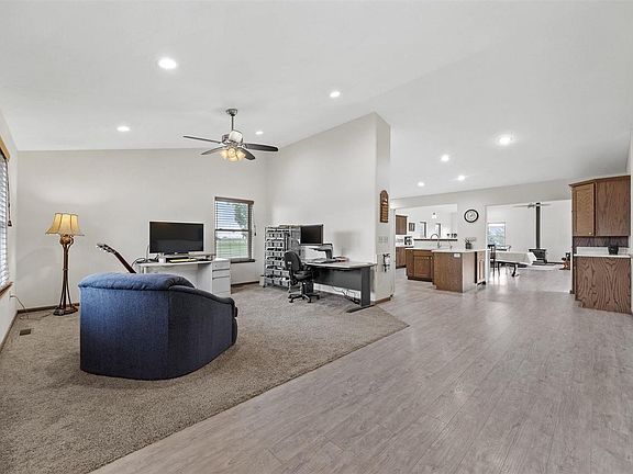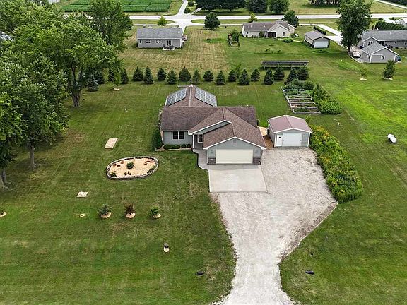 Sitting on just over an acre in English Valley Estates, this spacious Ranch-style home—originally built by Statler Construction Inc.—has been thoughtfully expanded with a finished basement and a stunning great room/sunroom addition. Now a 4-bedroom, 3-bath home, it boasts vaulted ceilings, wide 36-inch doorways, and an open layout perfect for both everyday living and entertaining. The sunroom offers panoramic views of the beautiful rural countryside and direct access to the backyard — a perfect place to relax and enjoy the peaceful surroundings. The property has solar panels for energy savings as well. Conveniently located just west of Kalona off HWY 22, this is country living at its best! Schedule your showing today!