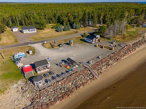 220+/- feet of ocean frontage, established business, a popular Airbnb with hot tub, and a comfortable home with garage and ocean views! This 10+/- acre property offers both residential living and multiple income streams. On one side of the road, the main bungalow features 2 bedrooms, 2 full bathrooms, a spacious living room, a partially finished basement, a mini-split heat pump, and a forced-air furnace. A detached garage, a camp at the back (with rental potential), and a small mini-camper are also included. The wooded area extends far behind and is currently used for activities such as snowshoe walks in winter, showing strong four-season recreational potential. From the home, enjoy beautiful ocean views and a paved driveway. The waterfront includes: • La Vue du Cap Canteen, a Five star rated canteen, sold with all equipment, offering outdoor terraces, covered seating, and a customer bathroom. This site is located on a building lot with approved well & septic, allowing future expansion or development. • A highly rated AIRBNB micro-home with a hot tub. • A hard ice cream cabin and souvenir shop, perfect for seasonal visitors. • A private staircase providing direct guest access to the beach. • Elevated Gravel access and parking on the commercial side with breakwater. With septic, well, electricity, multiple outbuildings, and a layout that blends lifestyle, recreation, and commercial potential, this is a true dream for entrepreneurs.