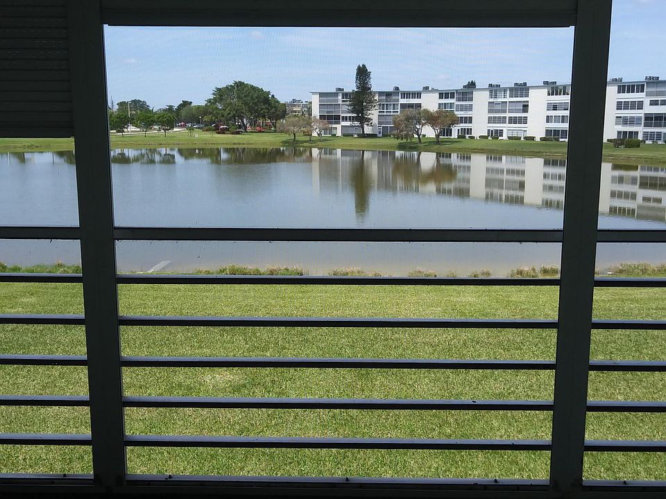 Available for annual rental in Century Village, a 55+ community, 1 bedroom/1 1/2 bath unit Tiled living room, Tiled and shuttered patio with magnificent lake view.