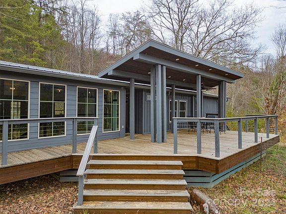 Located in the desirable East Fork community of Marshall, this impeccably renovated manufactured home sits on 15+ private, unrestricted acres. This south facing 3bd/3ba home has an open floorpan, with seamless flow from the kitchen w/ its stainless appliances & granite countertops, to the family room w/ a wall of new windows, year round mountain view, & gleaming hardwood floors. Charming renovations include porches, board & batten exterior & headboard interior. The stick-built addition allows for a second living quarters, w/ 1br/1ba, kitchenette, & separate exterior entrance. Immaculately maintained, this home boasts a new metal roof, new furnace, new well pump & spray foam insulation in roof & crawlspace within the past 6 years. The two car garage has been converted into a spacious workshop, complete w/ a ductless mini-split. Leave the land as is, or reclaim the pasture for livestock, tiny homes, or gardening. Easy 10 minutes to Marshall, Mars Hill and I-26 & 30 minutes to Asheville.