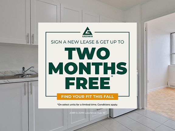 AboutWelcome to 2089 and 2099 Lawrence Ave. W. conveniently located on Lawrence Ave. W. and Weston Rd. in Toronto, these buildings offer a perfect blend of comfort and convenience with spacious 1 and 2 bedroom suites featuring a patio or balcony with scenic views. Residents enjoy the luxuries of an on-site pool and sauna, as well as the advantage of a laundry facility within the building.
