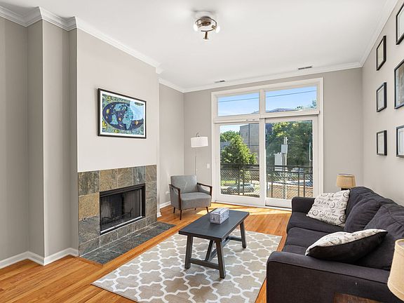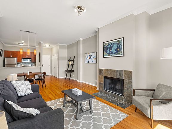 Don't miss out on this oversized 1-bedroom gem boasting an open layout that seamlessly blends the living and dining areas, creating a perfect space for entertaining or relaxing!  The living room features a cozy wood-burning slate fireplace and offers direct access to a private balcony where you can enjoy your morning coffee or unwind after a long day. The modern kitchen is a chef's delight, equipped with sleek stainless-steel appliances, a convenient breakfast bar, and ample counter space. The spacious bedroom features large window that floods the room with natural light. Enjoy the spa-like ensuite marble bath with dual vanity and pamper yourself in the separate whirlpool tub or luxurious shower. Located in the bustling Bucktown neighborhood, you'll be surrounded by an array of trendy boutiques, eclectic dining options, and lively entertainment venues. Nearby hotspots include the 606 Trail, perfect for a scenic walk or bike ride. Experience the ultimate in convenience with garage parking included and easy access to public transportation and major highways. Take advantage of this exceptional opportunity to live the good life in one of Chicago's most sought-after neighborhoods!