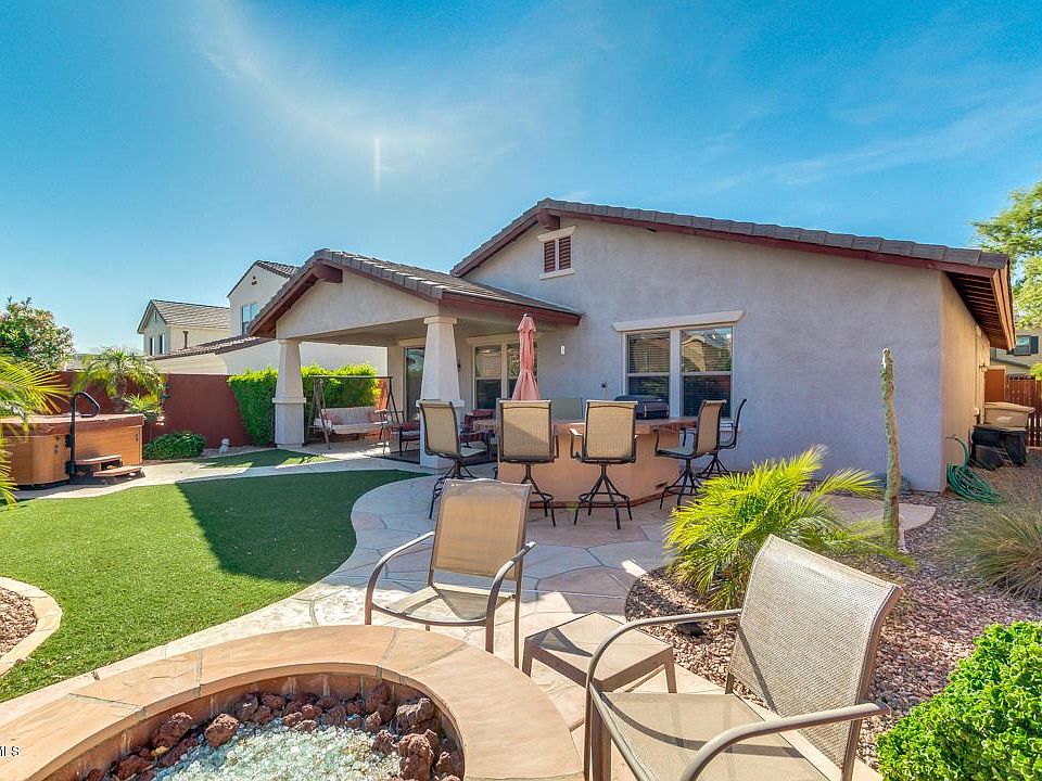This is a FANTASTIC home located in much desired Verrado master planned community. North/South exposure! This home has CHARM in all the right places featuring 2bdrms, 2bath, a den/office that could be converted into a 3rd bedroom & 2 car garage. This one wont last long!!! Barely lived in. The entry features large exterior porch. Wonderful kitchen includes maple cabinets, beautiful granite counter tops & stainless steal appliances. Home features an OPEN floorplan. NEW wood flooring in living room. Master has a its own private bath & walk in closet and its conveniently located on the opposite side from the guest bedroom and bath. Back yard is entertainers dream. Outdoor kitchen, covered patio, artificial turf & more! SPA conveys with sale! This home is a MUST SEE!!! So much value for $!