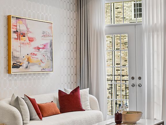 Sun-drenched primary suiteSkyline viewsGas fireplaceBuilt-in shelvesCrown mouldingContemporary designTimeless warmth
