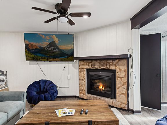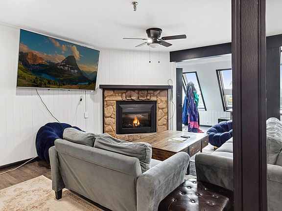 LOTS OF UPGRADES! This 2BR/2BA Leatherbark END UNIT has a remodeled kitchen with solid countertops. New kitchen cabinets and stainless steel appliances. New flooring throughout. Large dining table easily seats 8 people. New bathrooms with tile showers. Skylights were replaced in 2022. Electric fireplace and huge flatscreen TV in living area. Washer and Dryer. Shared deck with sunrise views. Gated parking. Communal firepit area, with basketball goal. Communal bike-wash station. Large backyard area perfect for homeowner's pet. Short walk to the slopes. On the free shuttle route. Across the street from grocery store. Monthly HOA is $510.