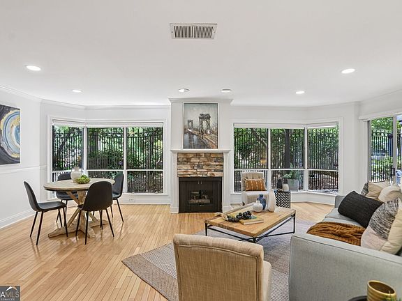See the difference between "ho hum" and WOW! Much desired private patio, large enough for quiet dining or large party, sets #105 apart from all other Midtown condos. This stunning home has all the updates a professional desires + the charm of being in an established building. All new white kitchen with quartz countertops, deluxe appliances, pantry, and breakfast bar leads to open living room with gas fireplace, hardwood floors and floor to ceiling windows. Roommate floor plan with an oversized bedroom with automatic shades and walk in closet. Both bathrooms are updated. Tandem parking for 2 cars + extra storage cage in basement are included. You can enjoy the pool, clubhouse and gym on a daily basis. 14th ST is an unbeatable location in the Heart of vibrant Midtown with the serenity of the Park on one side + the energy of the Arts District on the other. Enjoy walking to an array of local restaurants, many events at Piedmont Park, the Beltline, the Arts Center, and Marta-offering direct access to the airport in just 24 minutes. You'll love calling #105 your home!