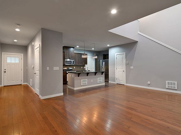 Welcome to your dream home in the desirable Abbey Road community ideally located near transit, shopping, and dining. This end unit features a spacious kitchen with stainless steel appliances and a large island, perfect for entertaining. The kitchen opens to a cozy living area with a gas fireplace and beautiful hardwood floors.