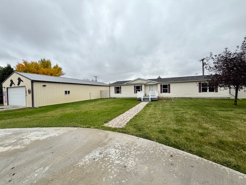 DOUBLE-DOUBLE SHOP + 3 bed 2 bath Home! Welcome to Lavina — a charming town nestled along the scenic Musselshell River, just 40 miles north of Billings. Set on a generous 21,000 sf lot, this 2006 manufactured home is on a permanent foundation & offers 3 bedrooms, 2 bathrooms. The TRUE SHOWSTOPPER, however, is the impressive 4-car garage — a double, double layout that’s insulated, heated, 2 garage doors & built-in floor drain w/ metal siding & metal roof. It’s completely maintenance-free & designed for Montana’s seasons. The U-shaped driveway provides ample parking & easy access. Inside, you’ll find comfort & convenience with many extra upgrades such as: A sauna in lieu of the primary suite corner bathtub, Hot tub hook-up, whole-house generator converter, water softening system, under-sink RO system, UG sprinklers, A/C & 500 gal. propane tank - all of which are owned not leased.