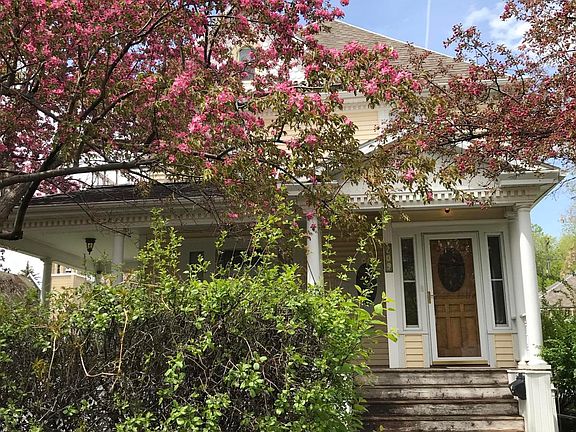 An amazing find! This Turn of the Century house has been beautifully remodeled. You will love the open staircase and refinished wood floors, The beautiful lead glass windows continue throughout the home. The main floor boasts a newer kitchen with an island and lots of storage. The South facing living room is large and sunny, and leads to the beautiful formal dining room, complete with plate rail and built in buffet. The upstairs has 3 large bedrooms, including a roomy master bathroom and 2nd full bath. The private grounds have underground sprinklers and are beautifully landscaped.The triple garage is newer and has a loft for storage.