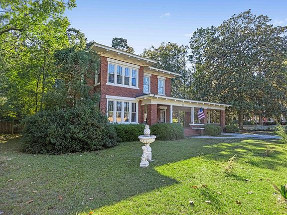 This stately, mid-century modern, two story, brick home is a must see. There is a large, wrap around front porch which leads into a wide, inviting foyer, which has the original French doors. The French doors lead into the spacious living area. The stunning, original mill work is all intact and sets off the originality of this home. There is also a roomy, reading alcove located in the living area . The beautiful millwork continues into the dining room which boasts built-in china cabinets. Also from the foyer, there is an unique staircase that will lead you to the 2nd floor or up and over into the kitchen. The upstairs has 4 spacious bedrooms and full bathroom. The property is fenced and a firepit, along with a back deck provide a private oasis in the backyard. Call and make your appointment to tour this beautiful, one-of-a kind home today!