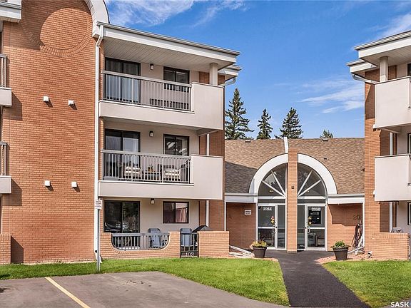 A spacious condo with tasteful upgrades in one of Saskatoon’s favourite locations; welcome to 201-209A Cree Place in Lawson Heights. This two bedroom, two bathroom condo is on the second floor in the corner and features 1098sf of living space with plenty of updates throughout. The bright kitchen features plenty of cabinetry, vinyl flooring and included appliances then leads into the large living room with laminate flooring and tons of natural light through the glass patio doors. Down the hall you’ll find the 4pc main bath with vinyl flooring, a nice sized guest bedroom with new carpets and the primary bedroom is massive featuring new carpets and an updated 3 pc en suite with vinyl flooring. Outside there’s a huge balcony facing green space featuring extra storage space. More notable extras in this neat and tidy condo include in suite laundry and TWO parking stalls. Located near all amenities including groceries, gas stations, schools, clinics and only steps from Lawson Heights mall. Don’t miss your opportunity to own a turn key condo at an affordable price in one of Saskatoon’s most popular spots. Call or text your favourite Saskatoon real estate agent to arrange your viewing and check out the video tour before it’s gone!